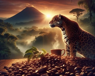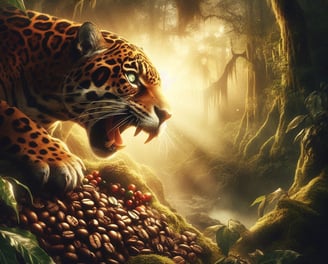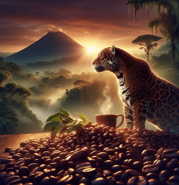 En lo profundo de las selvas nebulosas de Guatemala, donde la naturaleza revela sus secretos más antiguos, existe una conexión especial entre el majestuoso jaguar y el café que crece en estas tierras. Permítenos llevarte en un viaje a través de la magia y el misterio del despertar del Jaguar, una experiencia de café que despierta los sentidos y el espíritu. La selva de Guatemala, con su densa vegetación y paisajes montañosos, es el hogar del poderoso jaguar, un símbolo de fuerza y enigma. Al amanecer, cuando los primeros rayos de sol atraviesan la niebla, el jaguar emerge de su descanso, lleno de energía y vitalidad. Este despertar no es casualidad, pues en las montañas de estas tierras crecen los granos de café más especiales, aquellos que comparten la esencia misma del jaguar. El café Despertar del Jaguar se cultiva en las altiplanicies guatemaltecas, donde la tierra fértil y el clima perfecto permiten que los granos desarrollen un sabor profundo y robusto. Estos granos, acariciados por la niebla matutina y enriquecidos por el suelo volcánico, capturan la fuerza y el misterio de la selva. Cada sorbo del Despertar del Jaguar te transporta a los paisajes místicos de Guatemala, donde puedes casi sentir la presencia del jaguar acechando en la sombra. Las notas intensas y complejas de este café reflejan la majestuosidad de su guardián, ofreciendo una experiencia que despierta tanto el cuerpo como el alma. Descubre el poder y el misterio del Despertar del Jaguar, y permite que cada taza te conecte con la magia ancestral de la selva guatemalteca. Este café no solo es una bebida, es una puerta a un mundo lleno de fuerza y enigma.