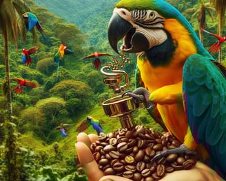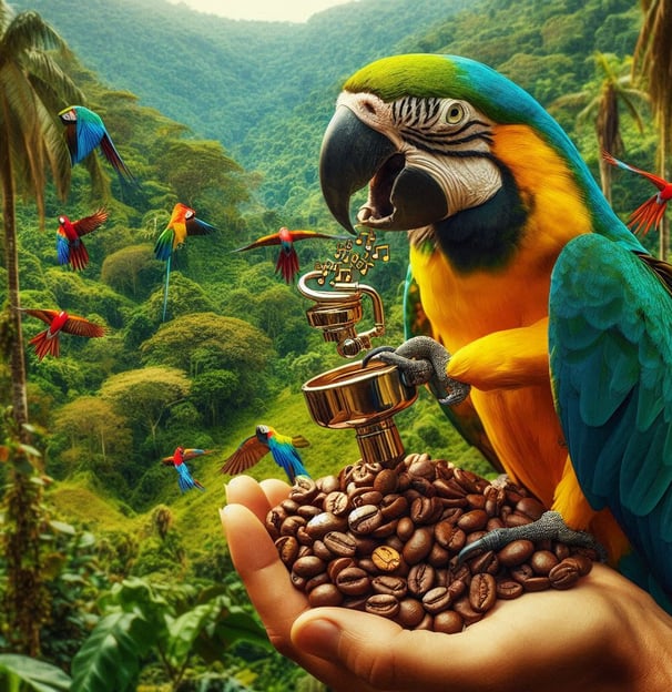 En las exuberantes selvas de Brasil, donde la vida resuena en cada rincón, los loros entonan una sinfonía natural que celebra la diversidad y la alegría. Te invitamos a explorar Sinfonía del Loro, un café que captura la esencia vibrante y armónica de estas tierras. Brasil, conocido por su increíble biodiversidad y paisajes impresionantes, es el hogar de los loros más coloridos y melodiosos del mundo. Estos brillantes guardianes de la selva no solo embellecen el entorno con sus plumajes y cantos, sino que también protegen un secreto especial: los granos de café que crecen en estas tierras. Sinfonía del Loro se cultiva en las fértiles tierras brasileñas, donde el clima tropical y la rica biodiversidad crean un entorno perfecto para el cultivo del café. Los granos aquí desarrollan un perfil de sabor equilibrado, lleno de vida y alegría, reflejando la armonía de la naturaleza que los rodea. Cada taza de Sinfonía del Loro es una celebración de la vida y la diversidad. Las notas suaves y afrutadas, combinadas con una acidez equilibrada, crean una experiencia de café que resuena con la sinfonía natural de Brasil. Al degustarlo, puedes imaginarte entre las copas de los árboles, rodeado de los cantos y colores de los loros, sintiendo la alegría pura que estos guardianes traen a sus tierras. Permite que Sinfonía del Loro llene tu día de melodía y alegría, y déjate llevar por una experiencia de café que celebra la vida en todas sus formas. Este café no solo es una bebida, es una invitación a la armonía y la felicidad.